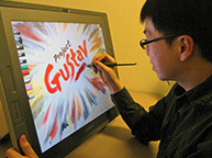 <— Klicka på bilden till vänster för att se en elektronisk oljemålning på duk fast i datortappning.