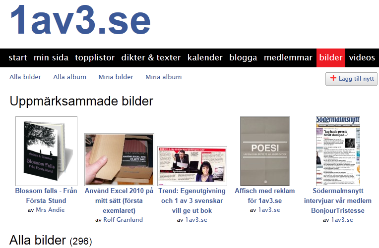 Den nya communityn 1av3 har uppmärksammat några av medlemmarnas bilder. Till min glädje finns bilden med där jag öppnade första exemplaret av min nya bok “Använd Excel 2010 på mitt sätt. 1av3.se har 700+ följare på Twitter där det bland annat finns både bokförlag och “folk i branschen”. Vidare 500+ vänner på Facebook och 15.000 sajtbesökare de senaste veckorna.