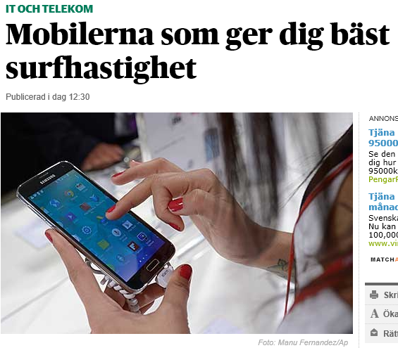 DN.SE, Dagens Nyheter, publicerar idag en massa statistik om vilka mobiler som har de snabbaste surfhastigheterna. Statistiken är framtagen av några som kallar sig “Bredbandskollen”. När jag läser artikeln och tar del av statistiken så får jag bilden av att jag befinner mig på en annan planet.
