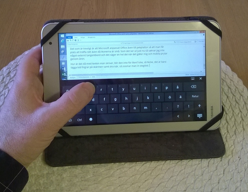 Ni som besökt min andra blogg har sett och förstått att jag skaffat mig en 8 tums pekplatta med Windows 8.1. Detta inlägg är således mitt första inlägg i Verksamhetsfilosofen via Windows Live Writer på denna lilla skärm vilket kräver sin precision. Så inlägget är ingen braskande nyhet annat än att det fungerar enligt mina förväntningar.