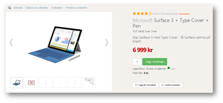 Halvera priset tack, eller ska jag kolla på alla andra 2000-kronorsalternativ… 7.000 spänn inkl. moms är för mycket! Så mycket bättre är inte Surface 3 jämfört med den Laptop som jag har.