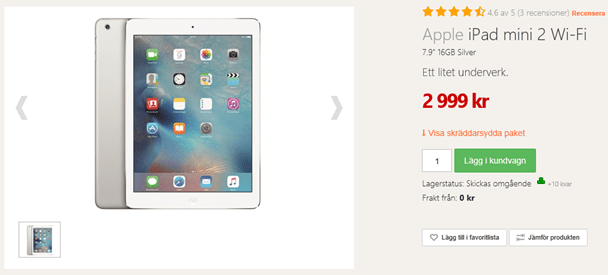 Första gången jag såg priset va i Telia-butiken i Falun. Jag höll på att ramla baklänges. Datorer från Apple som är tokbilliga! Hem och kolla vad Dustin Home tar för Paddan. Sen slog jag till!