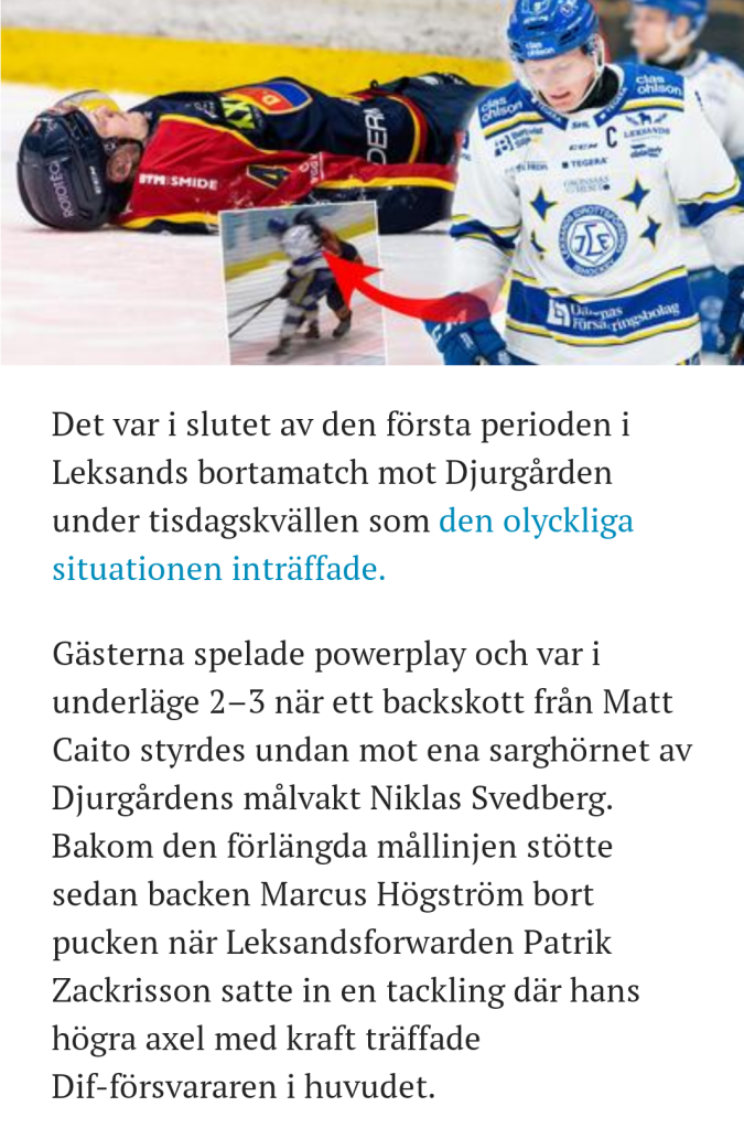 I gårdagens hockeymatch mellan Djurgården och Leksand blev en Djurgårdare tacklad på ett sätt som beskrevs olika i två separata artiklar skrivna vid olika tidpunkter. Man kan lugnt säga ”å ena sidan och å andra sidan”.