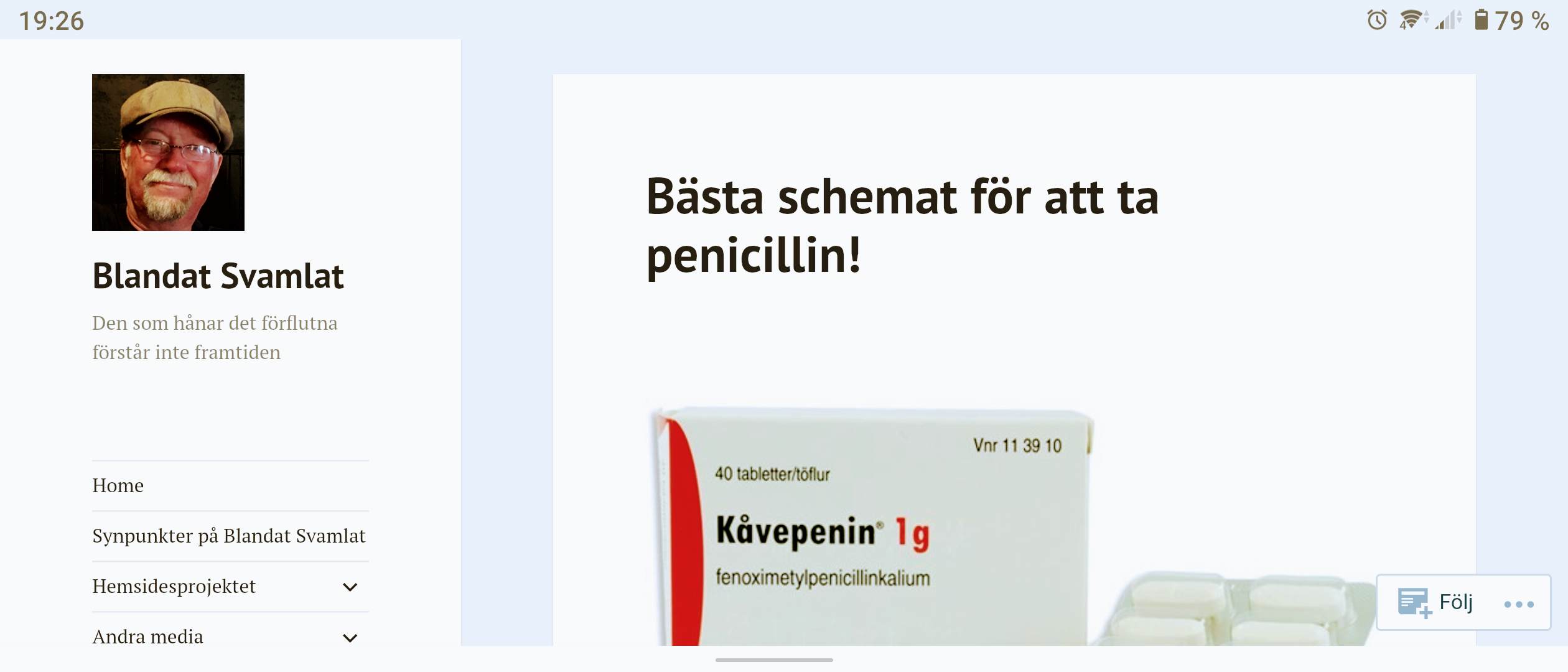 I vertikalt läge visas mina bloggar på samma sätt i de båda telefonerna med den skillnaden att Sonyn visar mer.