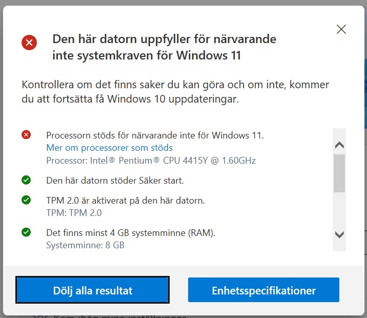[…] Nu tycker jag mig se att historien upprepar sig. Har jag en döende dator som min huvuddator? Jag vet att det finns nyare versioner av Surface Go men den jag har duger inte så småningom. Än så länge fungerar den perfekt men det går som sagt var inte att uppgradera till Windows 11. Orsaken är fysisk då processorn inte klarar Windows 11! Läs mer här […]