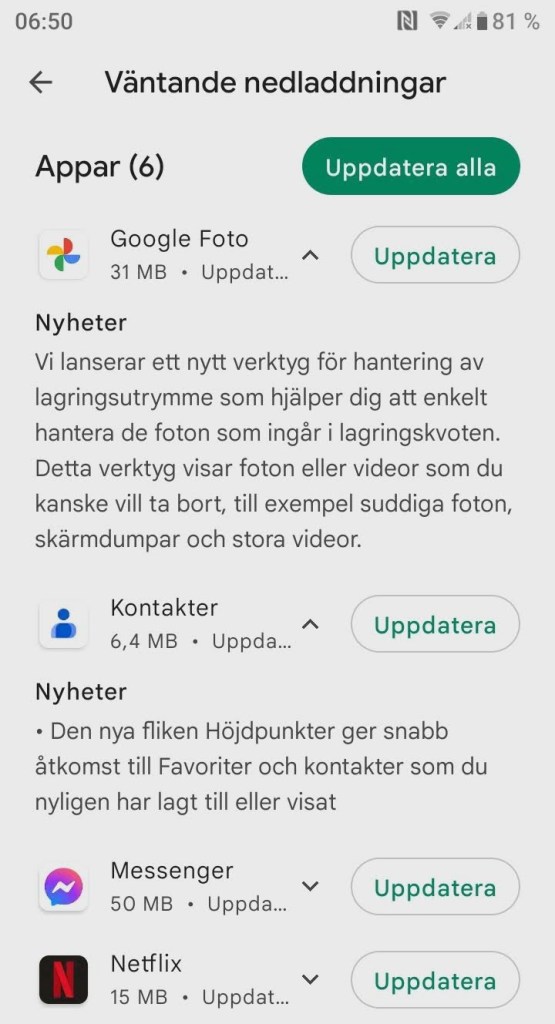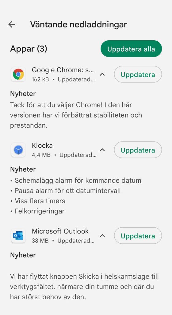 Det kommer nämligen uppdateringar varje dag. De flesta apputvecklare är duktiga på att kort berätta vad de förbättrat utom de stora som Facebook och de appar de tillhandahåller.