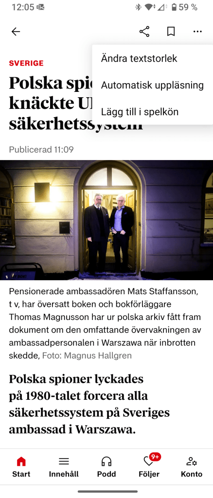 Som ett led i att kunna lyssna på texter så har jag hittat att DN, Dagens Nyheters app, har lagt till möjligheten att även lyssna på tidningens artiklar.