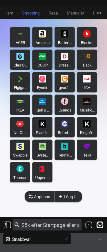 Vivaldi har en egen lösning som de kallar ”Snabbval”. Snabbval är helt enkelt vad jag vill ha i en browser.